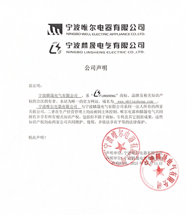 Ningbo Linsheng Electric Co., Ltd. is the legal owner of the LINSHENG trademark, brand, and related intellectual property rights. This website is the only official platform, with the domain name www.nblinsheng.com.Shop Now